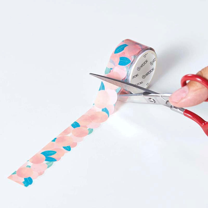 - Cinta adhesiva decorativa con estampado de ilustraciones de melocotones.
