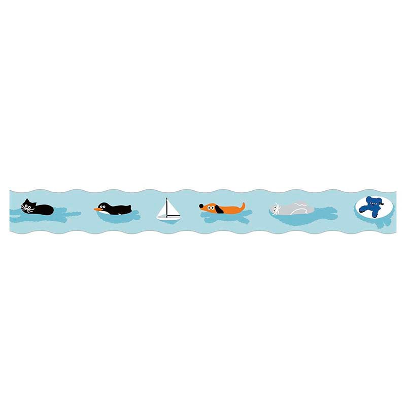 - Cinta adhesiva decorativa con estampado de ilustraciones de animales nadando.