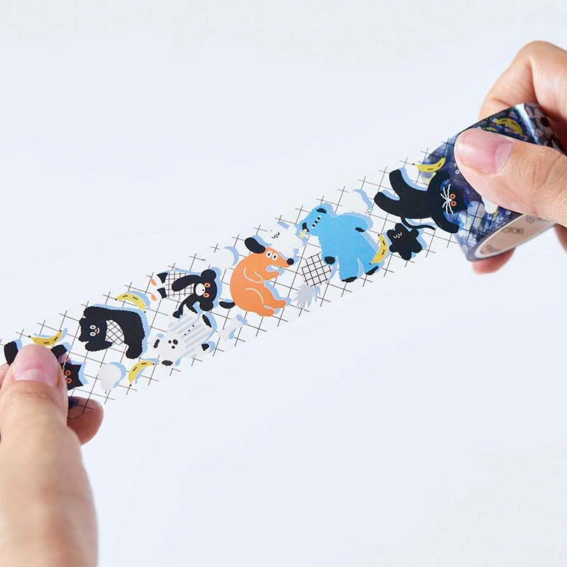 - Cinta adhesiva decorativa con estampado de ilustraciones de peluches.