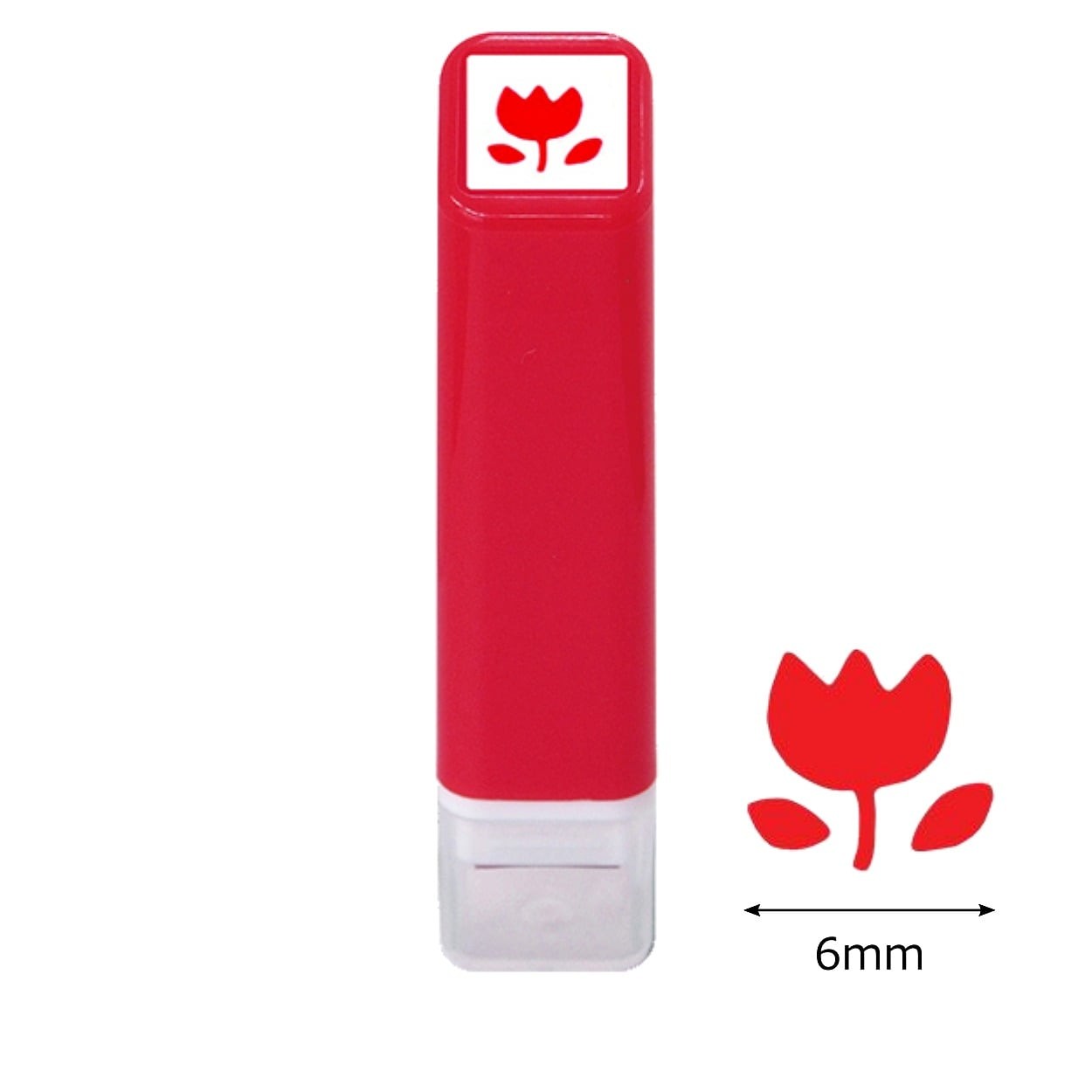 - Mini sello entintado con estampado de flor roja.
