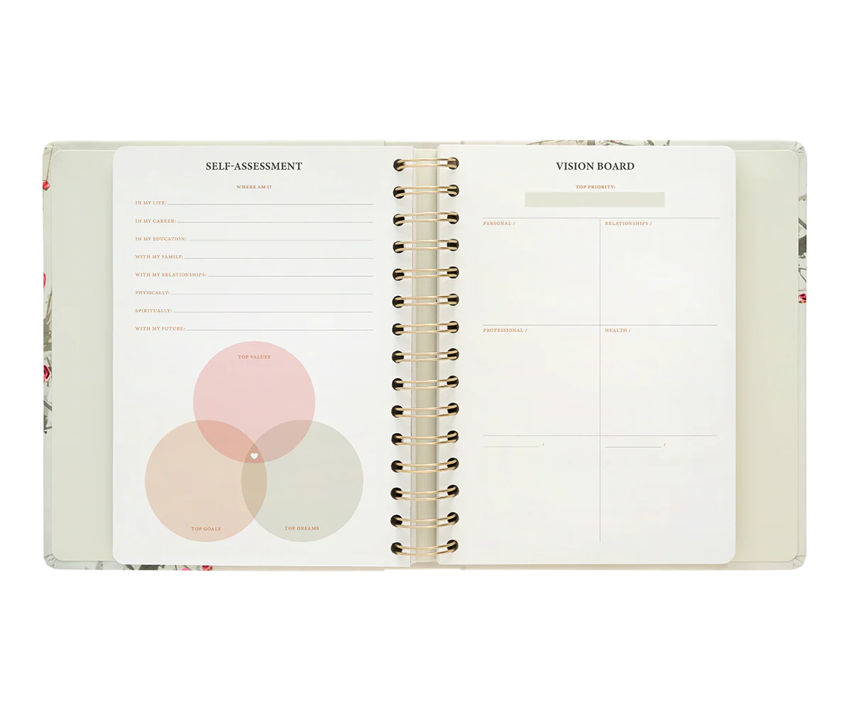 - Contenido exclusivo: calendario mensual, bucket list, financial balance, horarios, página de arte y habit tracker.
