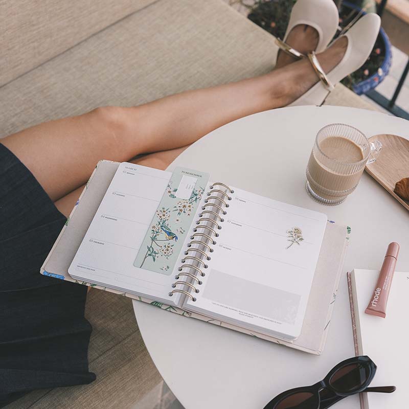 - Incluye un set de pegatinas para decorar la agenda y un conjunto de marcapáginas a juego.