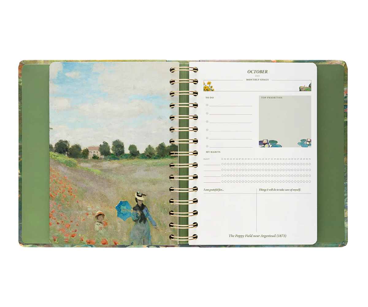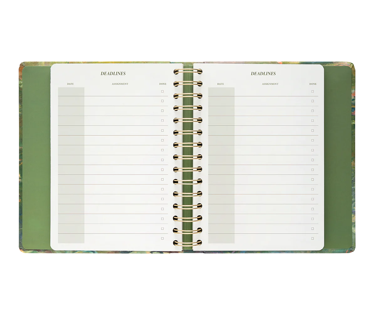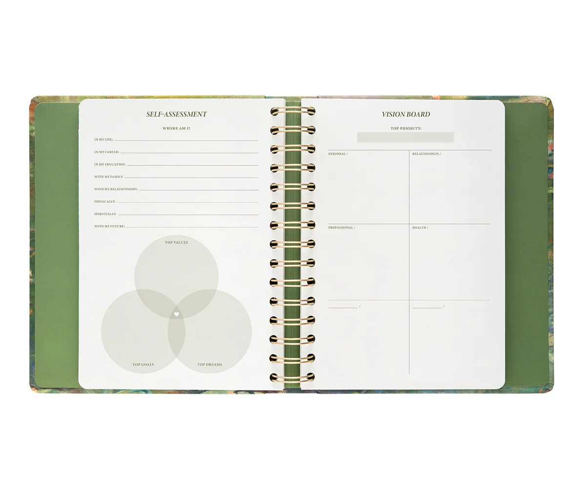 - Contenido exclusivo: calendario mensual, bucket list, financial balance, horarios, página de arte y habit tracker.