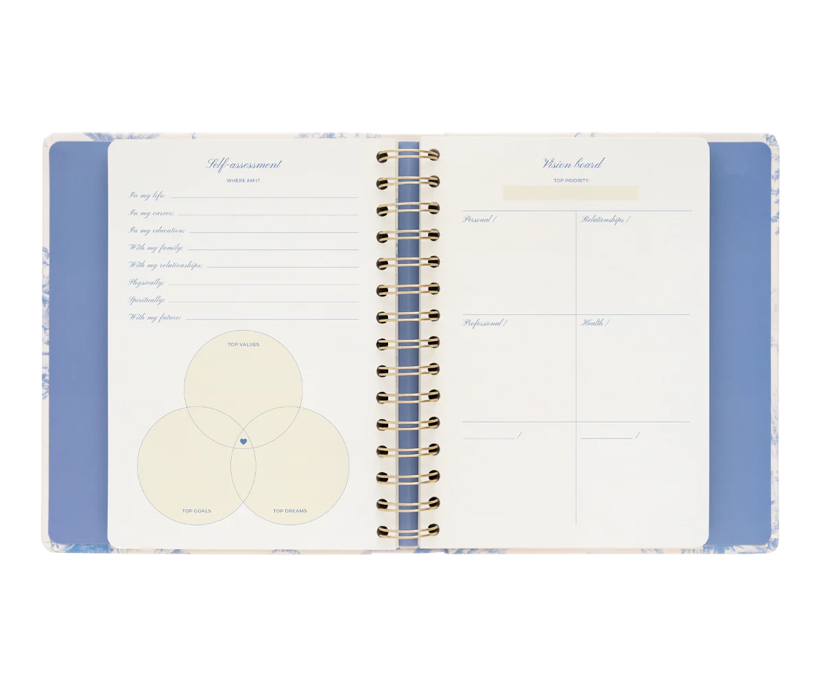 - Contenido exclusivo: calendario mensual, bucket list, financial balance, horarios, página de arte y habit tracker.
