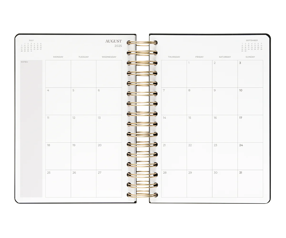 - Agenda de 12 meses desde Agosto 2025 hasta Julio 2026.