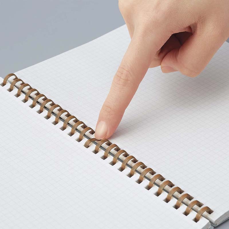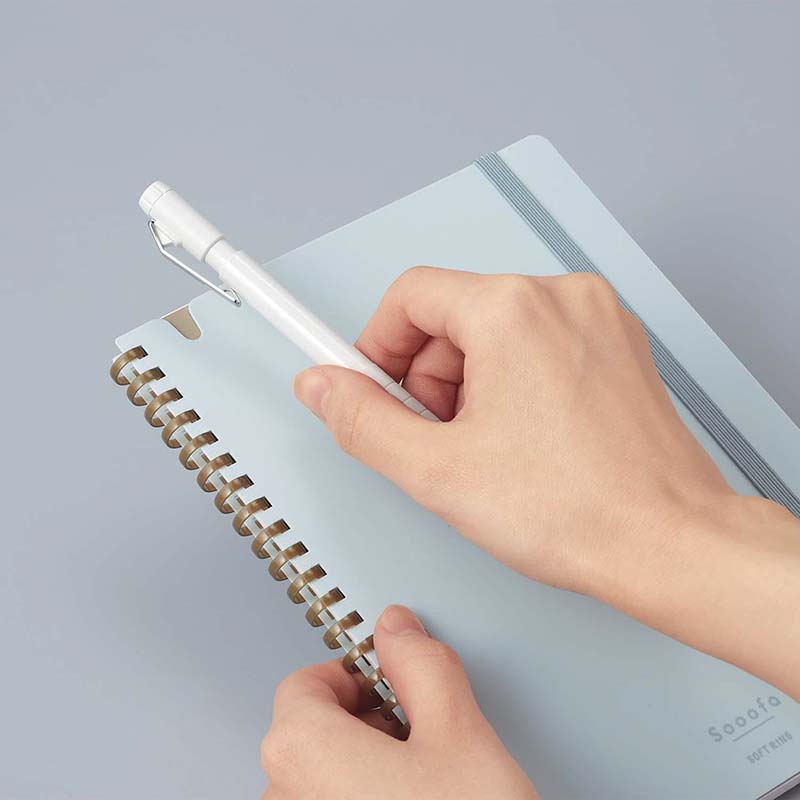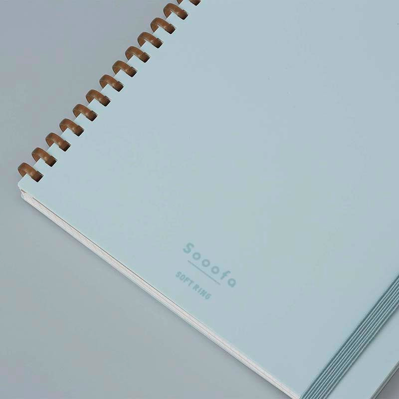 - Cuaderno de notas con anillas blandas y cierre con banda elástica.