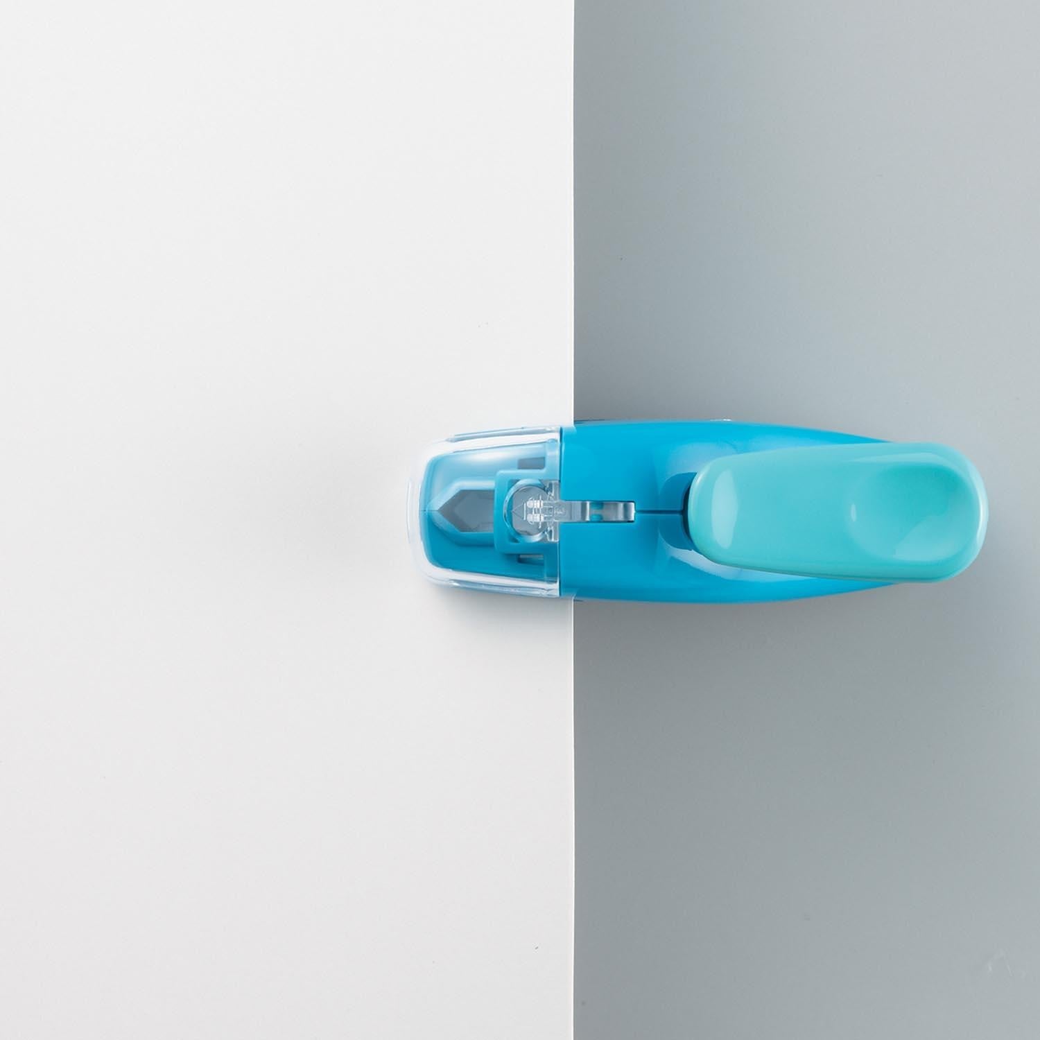 - Atención: este producto no tiene la misma fuerza que una grapadora convencionar y puede grapar juntas hasta un número específico de hojas (5 hojas).