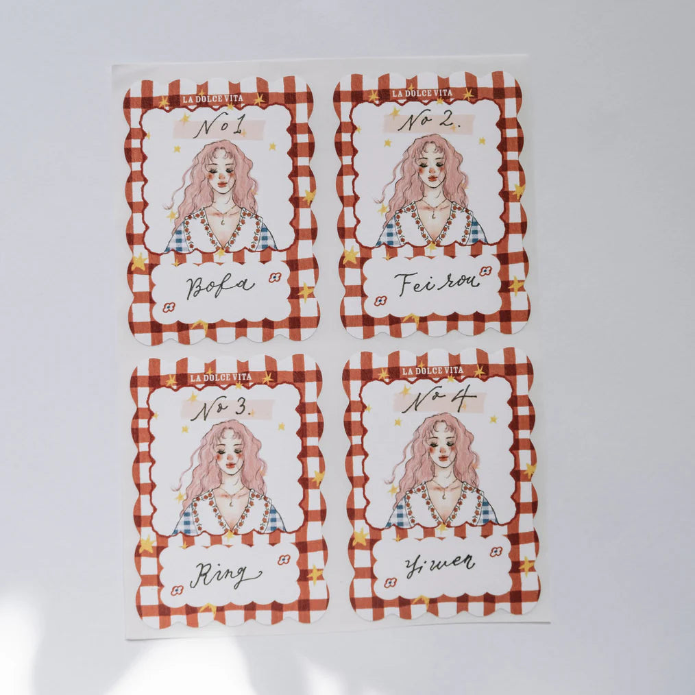 - Set de pegatinas con forma de etiquetas con estampado de la ilustradora taiwanesa La Dolce Vita.
