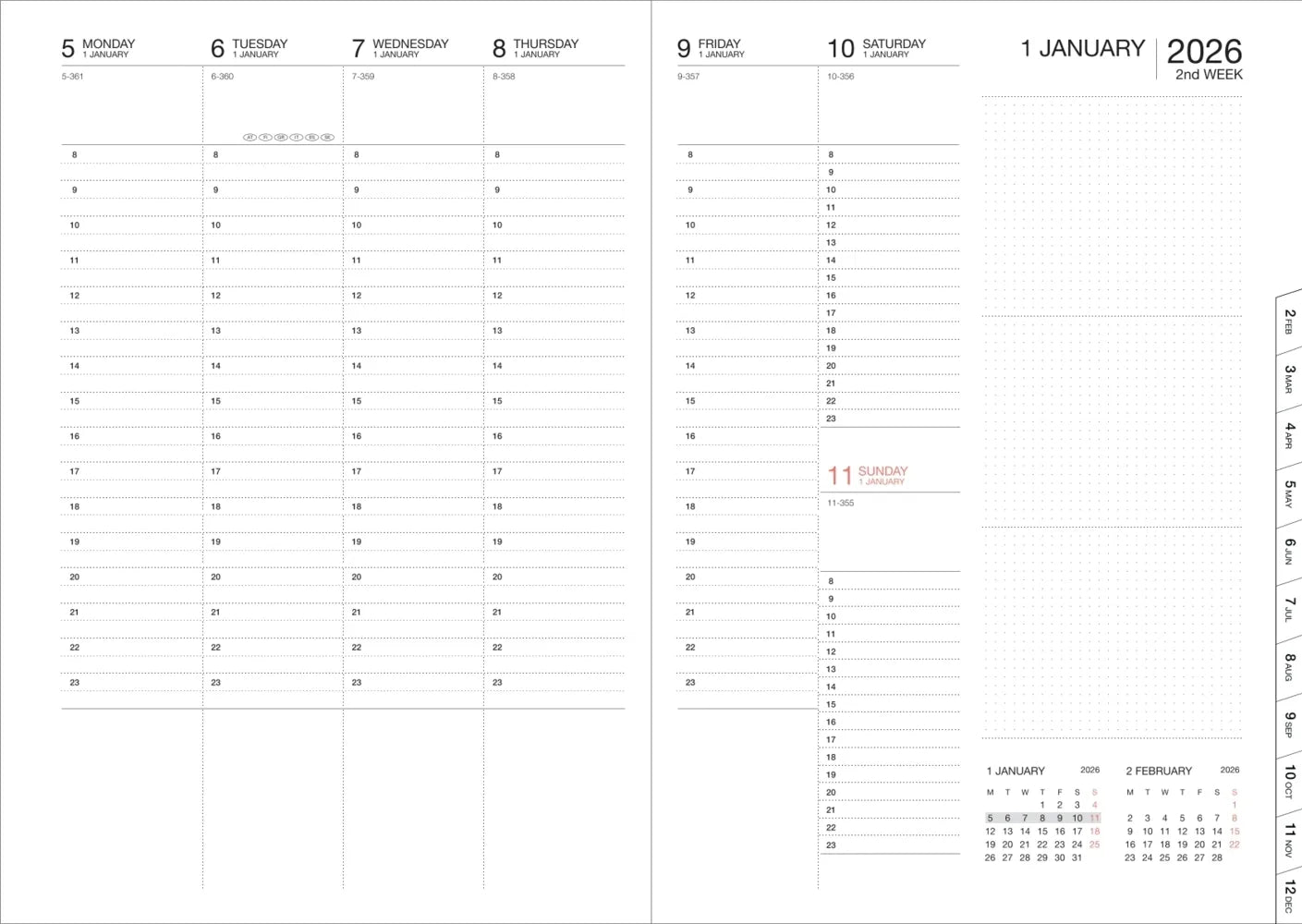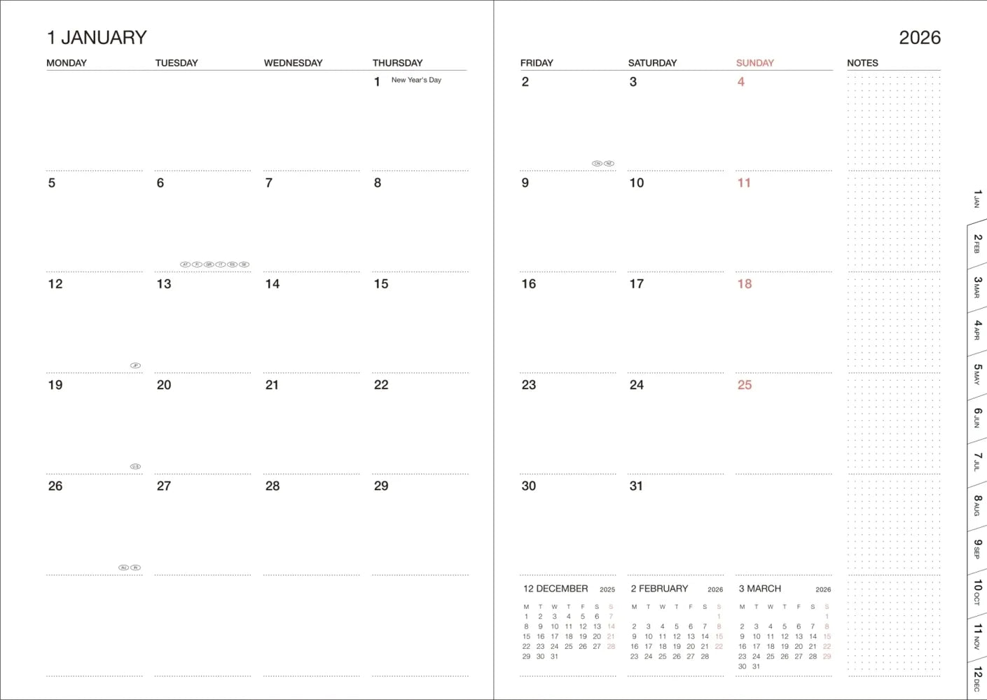 - Planificación mensual (pestañas para localizar cada mes con facilidad).