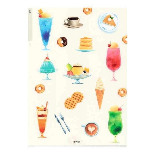 - Portafolios de 3 compartimentos con estampado de temática cafetería.