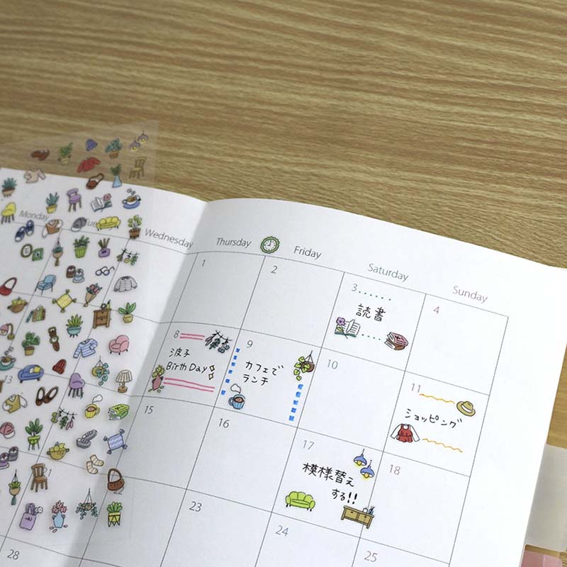 - Pegatinas decorativas con estampados mini de objetos cotidianos.