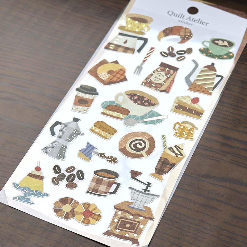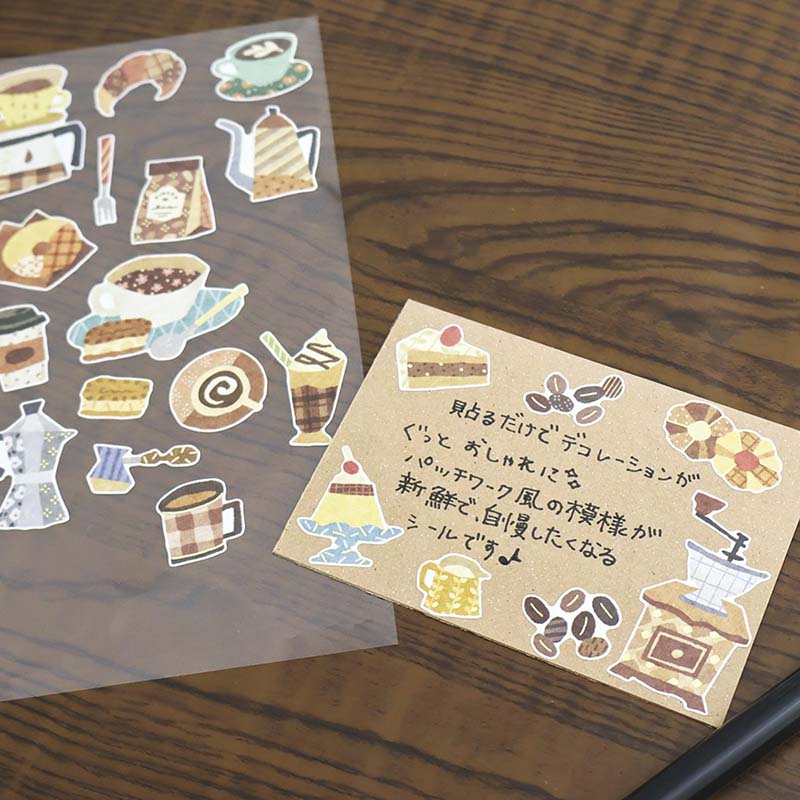 - Pegatinas decorativas con estampados de café y postres.