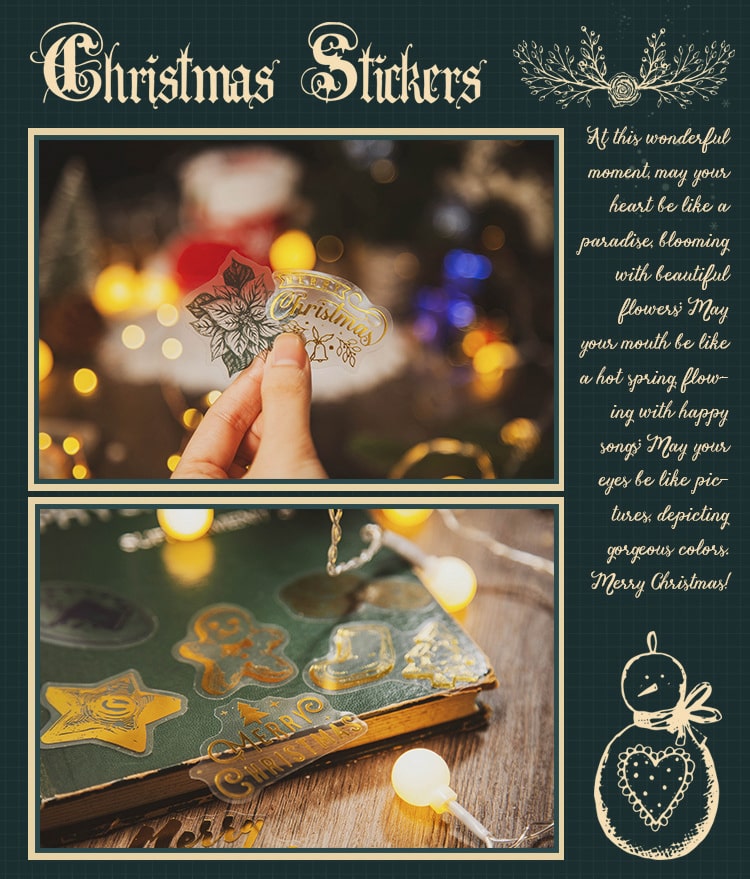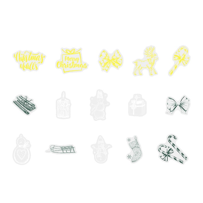 - Pegatinas decorativa de temática navideña con estampados en dorado.