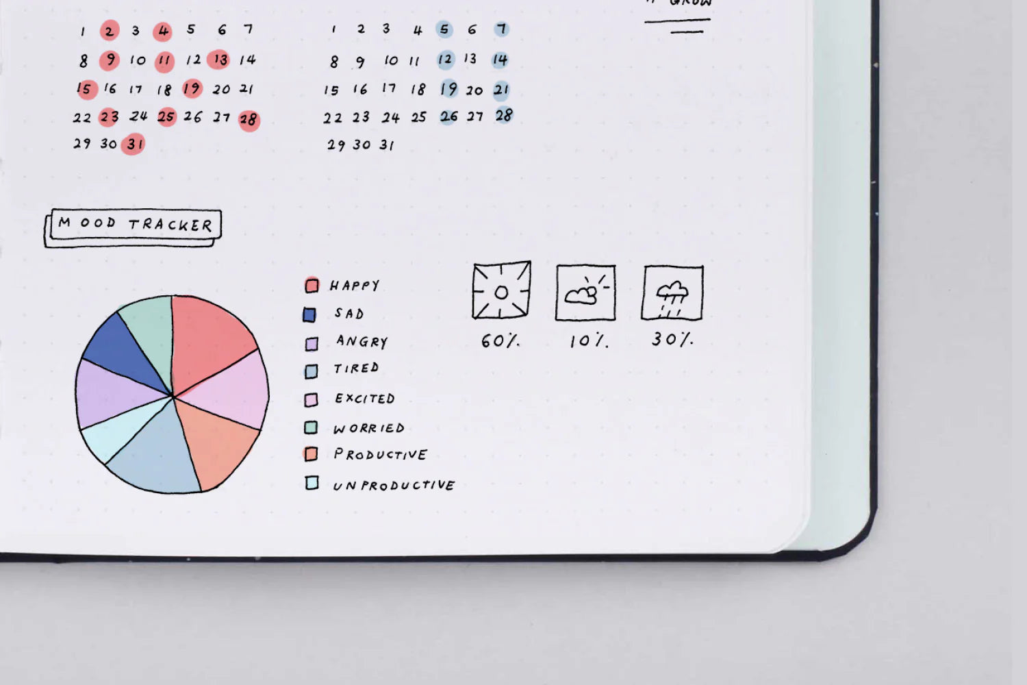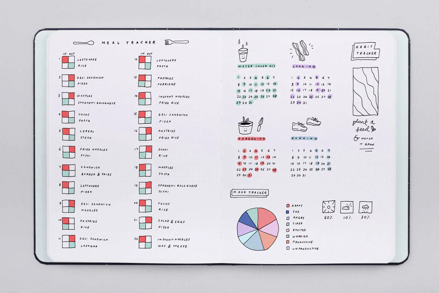 - 192 páginas con el interior de puntos de 5mm de separación perfecto para Bullet Journal.