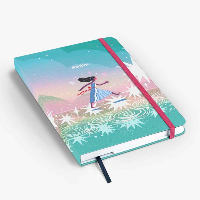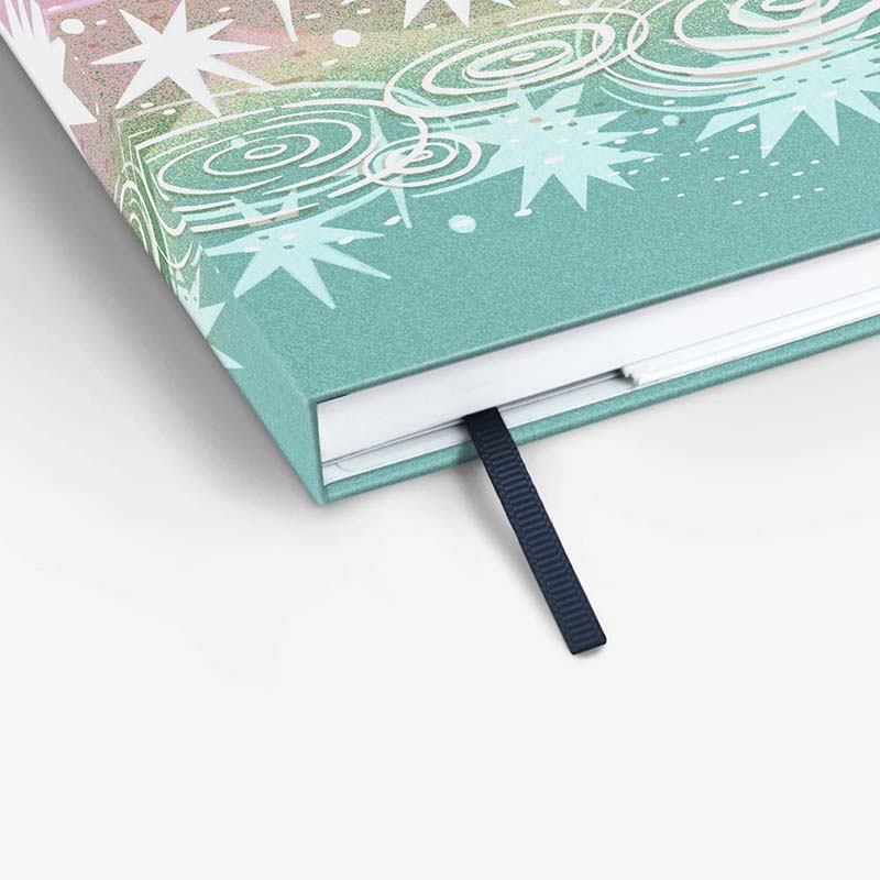 - Cuaderno Threadbound (encuadernación cosida) A5 con portada estampada a todo color.