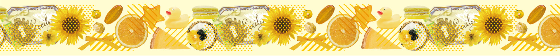 - Cinta adhesiva decorativa con estampados fotográficos de color amarillo.