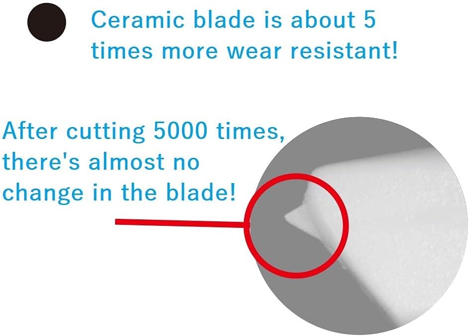 - Tiene una pequeña protuberancia de cerámica en la punta del cortador que es la parte que corta si se aplica presión en la superfície. Pero no es afilada en si mismo.