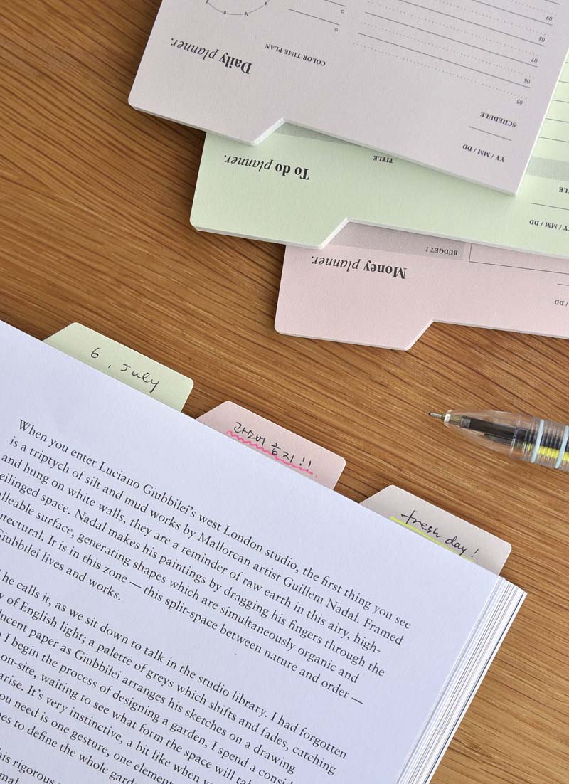 - Las notas tienen una forma especial para que una parte pueda sobresalir de la agenda o cuaderno en forma de index una vez aplicadas.