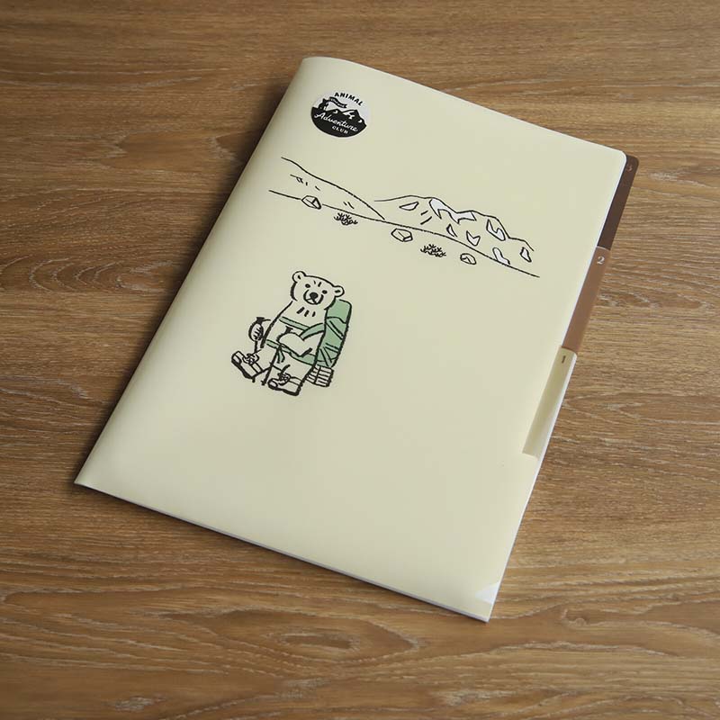 - Portafolios de 3 compartimentos con estampado de oso senderista.