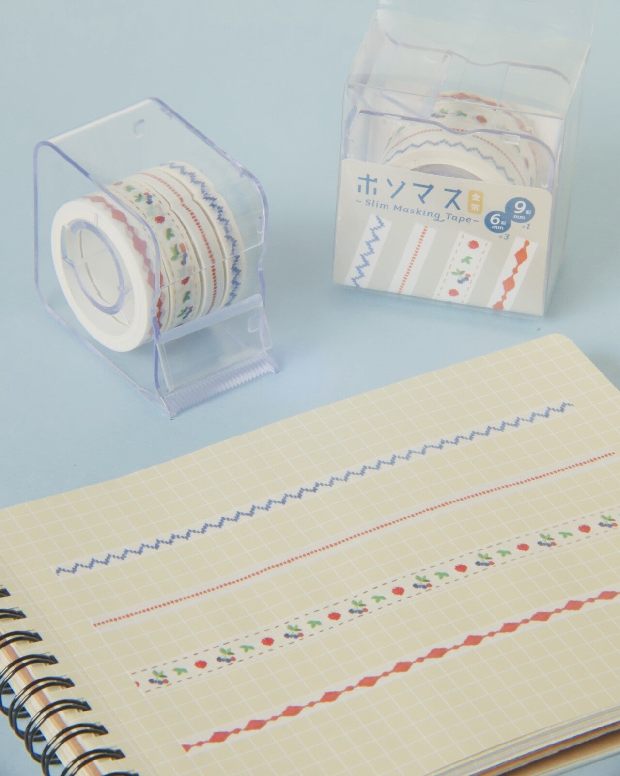 - Los washi tapes se presentan en una cajita de plástico que tiene función de cortador.