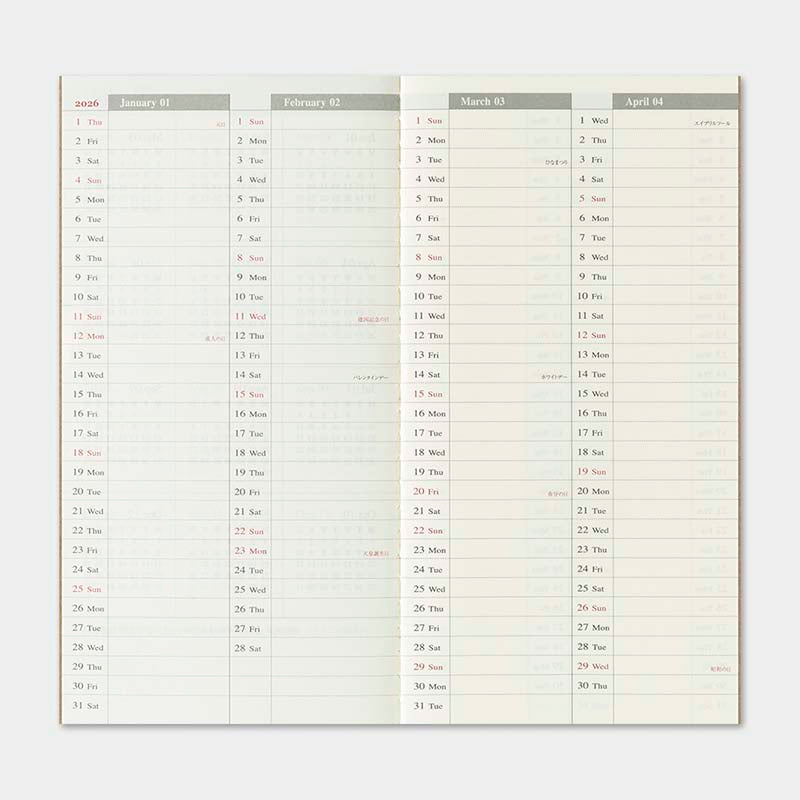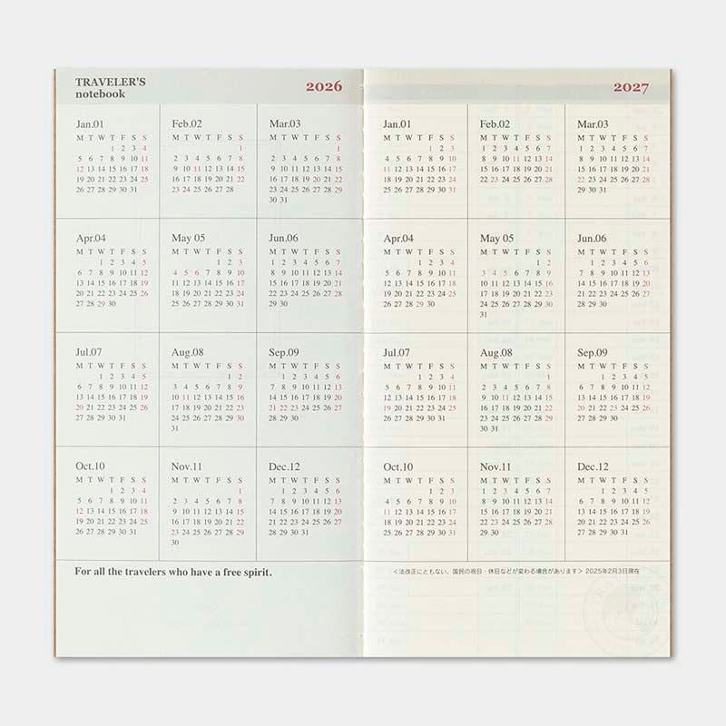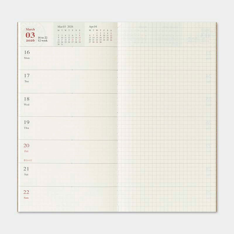 Traveler's Company | Recambio Agenda Traveler's Notebook Regular Semanal + Memo 2026 (Semanal)