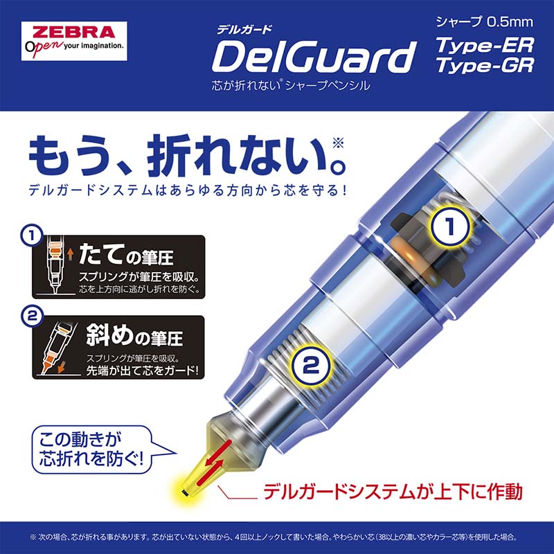 - El sistema "DelGuard" evita la rotura de la mina bajo presión de la escritura, tanto con la fuerza vertical como diagonal.